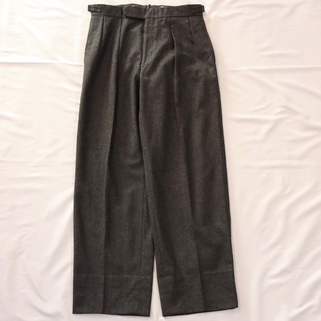 【90's Wide Wool Slacks "Polo by Ralph Lauren"】 90年代頃のラルフローレンのウールスラックスになります。 深めのツータックが入り、裾幅広めなワイドストレートな綺麗なシルエット。 ウエストはアジャスターにて調節可能ですっきりとしたデザインです。 合わせやすいダークグレー、状態も良くおすすめな1本です。 この機会に是非ご検討下さいませ。 表記 【欠損】 実寸W30 L30 ウエスト 最大約40cm×2 最小約38cm×2(調節可能) 股上 約28.5cm 股下 約75.5cm 総丈 約102cm 渡幅 約34.5cm 裾幅 約22.5cm 素人採寸の為多少の誤差はご了承下さいませ。 【コンディション】 ダメージ等なく綺麗な状態です。 古着慣れされてる方でしたら問題無くご着用頂けます。 見落とし等ある場合が御座いますので 神経質、古着慣れされてない方はご購入をお控え下さい。 ご不明な点は必ずご購入前にご質問下さいますよう お願いいたします。 【ご注意】 USED商品で御座いますので、返品交換は一切受け付けておりません。