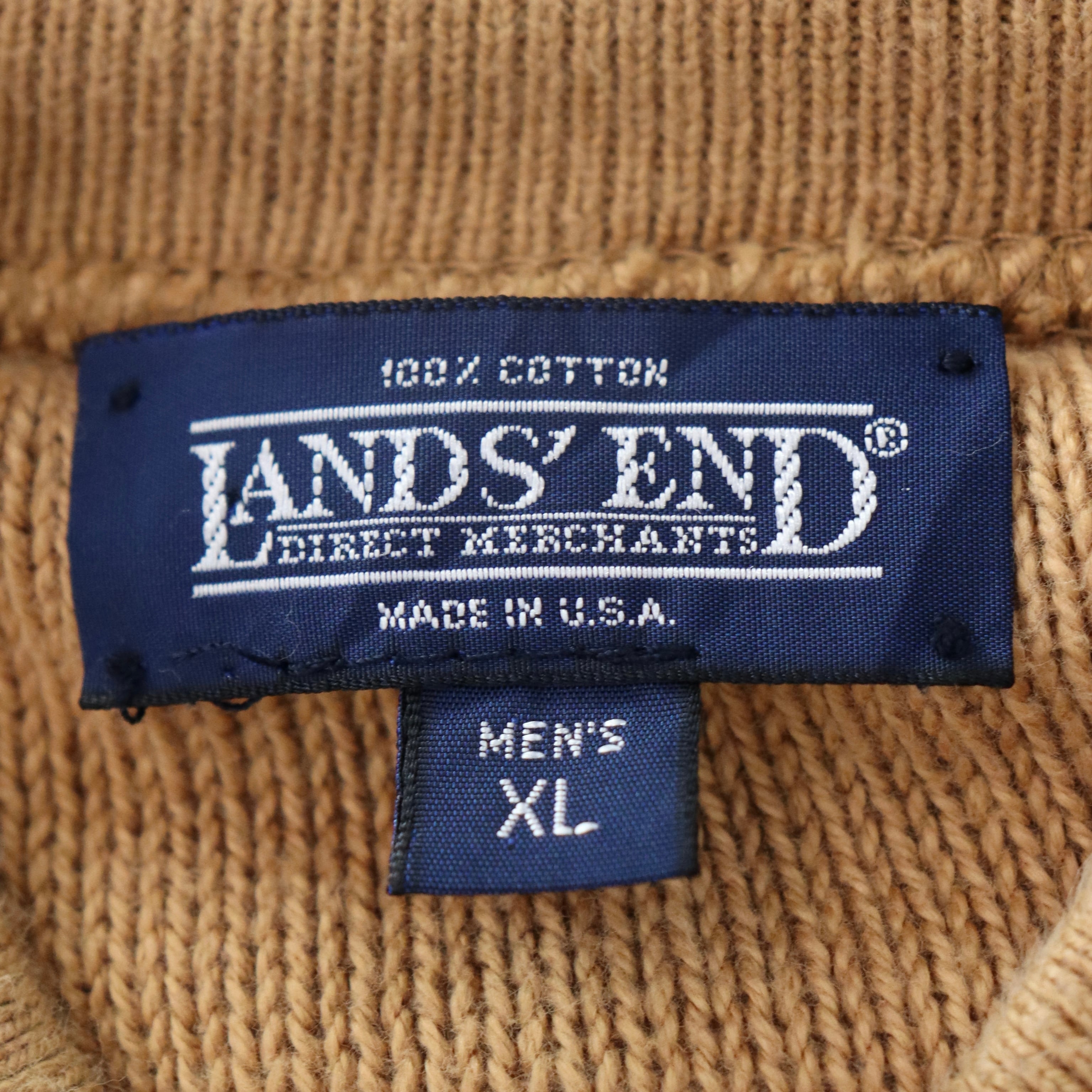 【90's Henley Neck Cotton Knit "LANDS'END"】