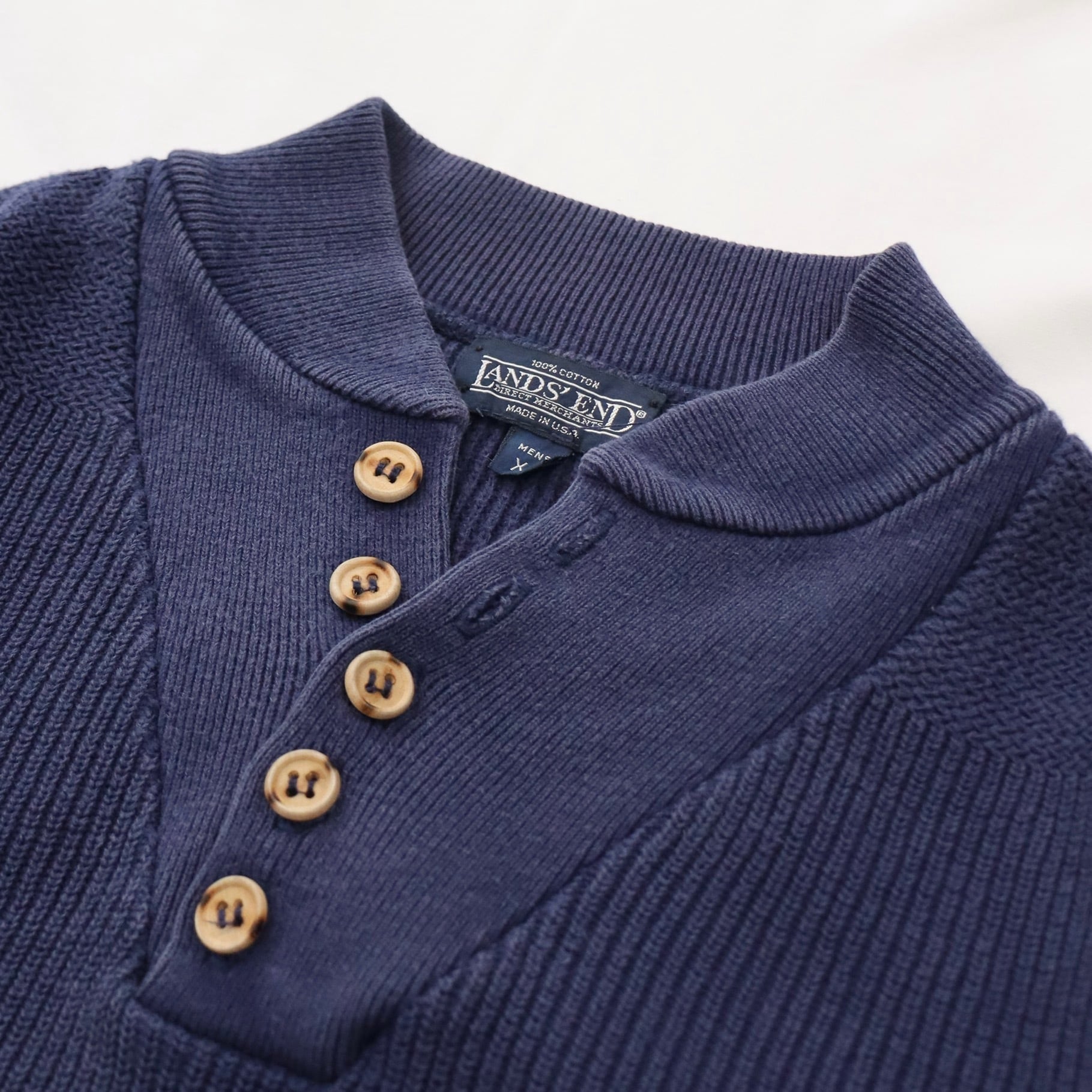 90年代頃のランズエンドのヘンリーネックニット(ジープセーター)になります。