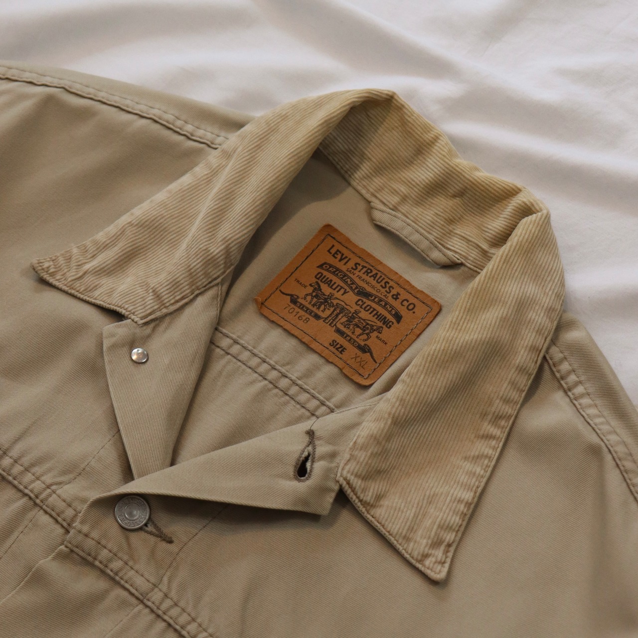 ベージュのコットンツイルに襟はコーデュロイ切り替えが映えます。
