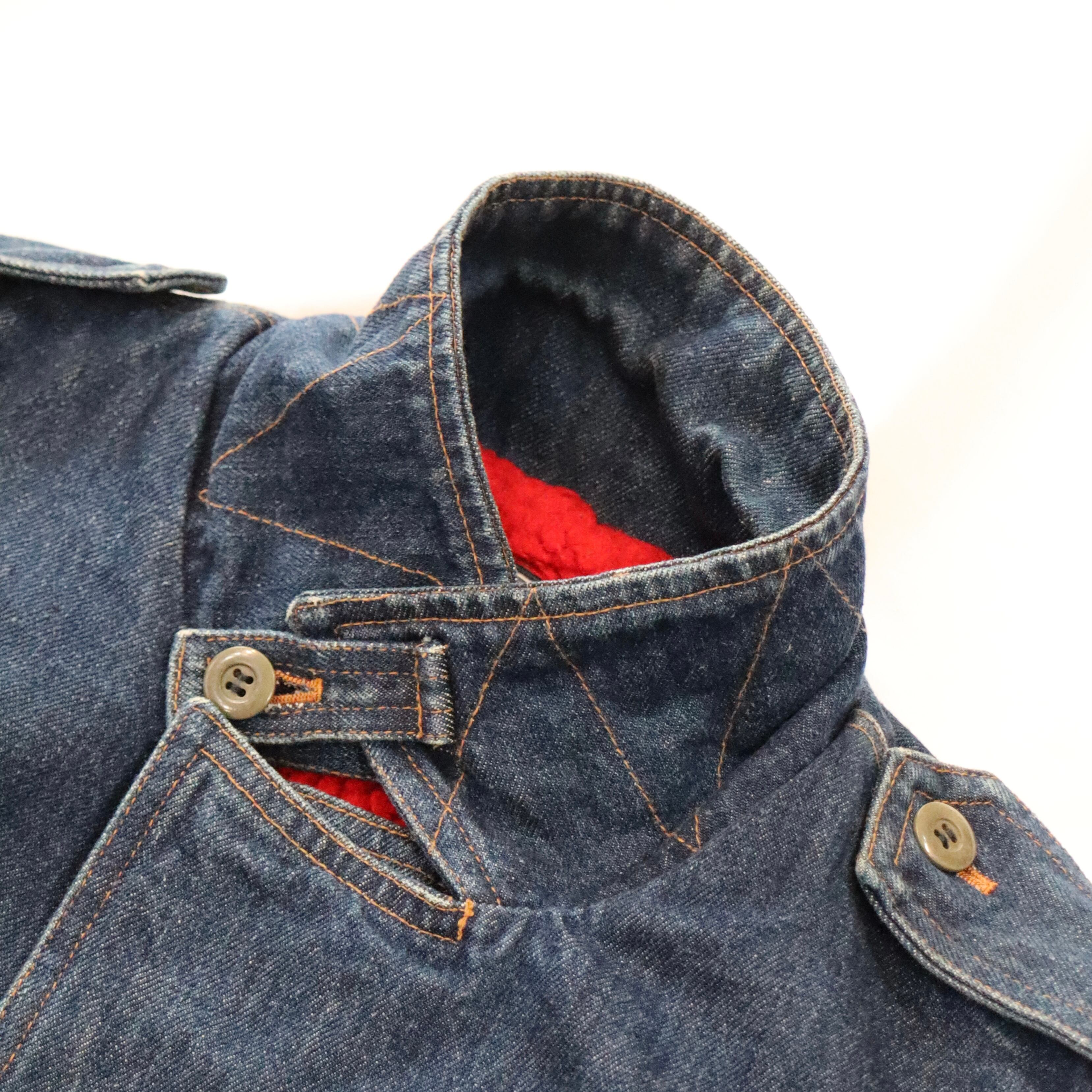 色味が濃く残るデニム生地にレッドのボアライナー。