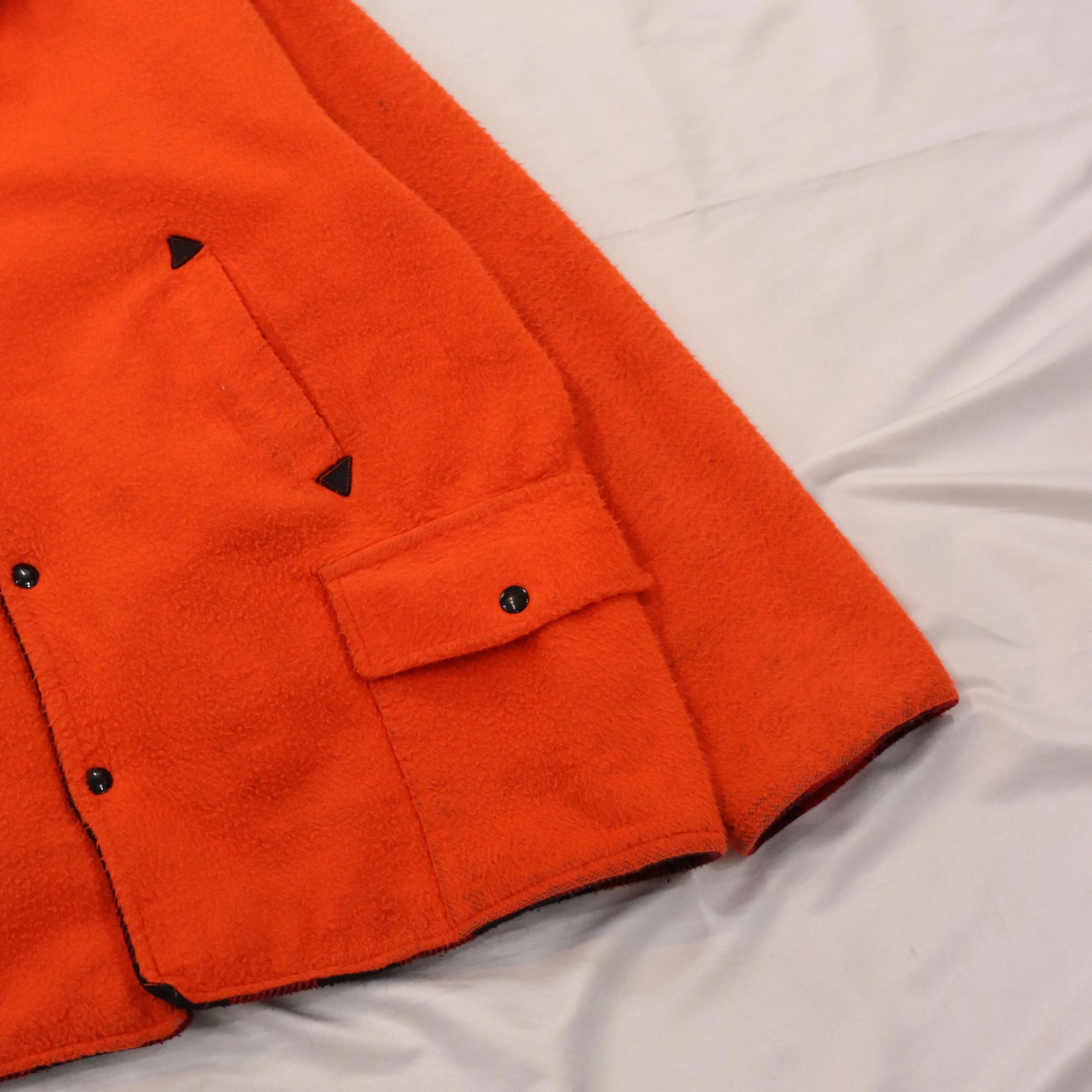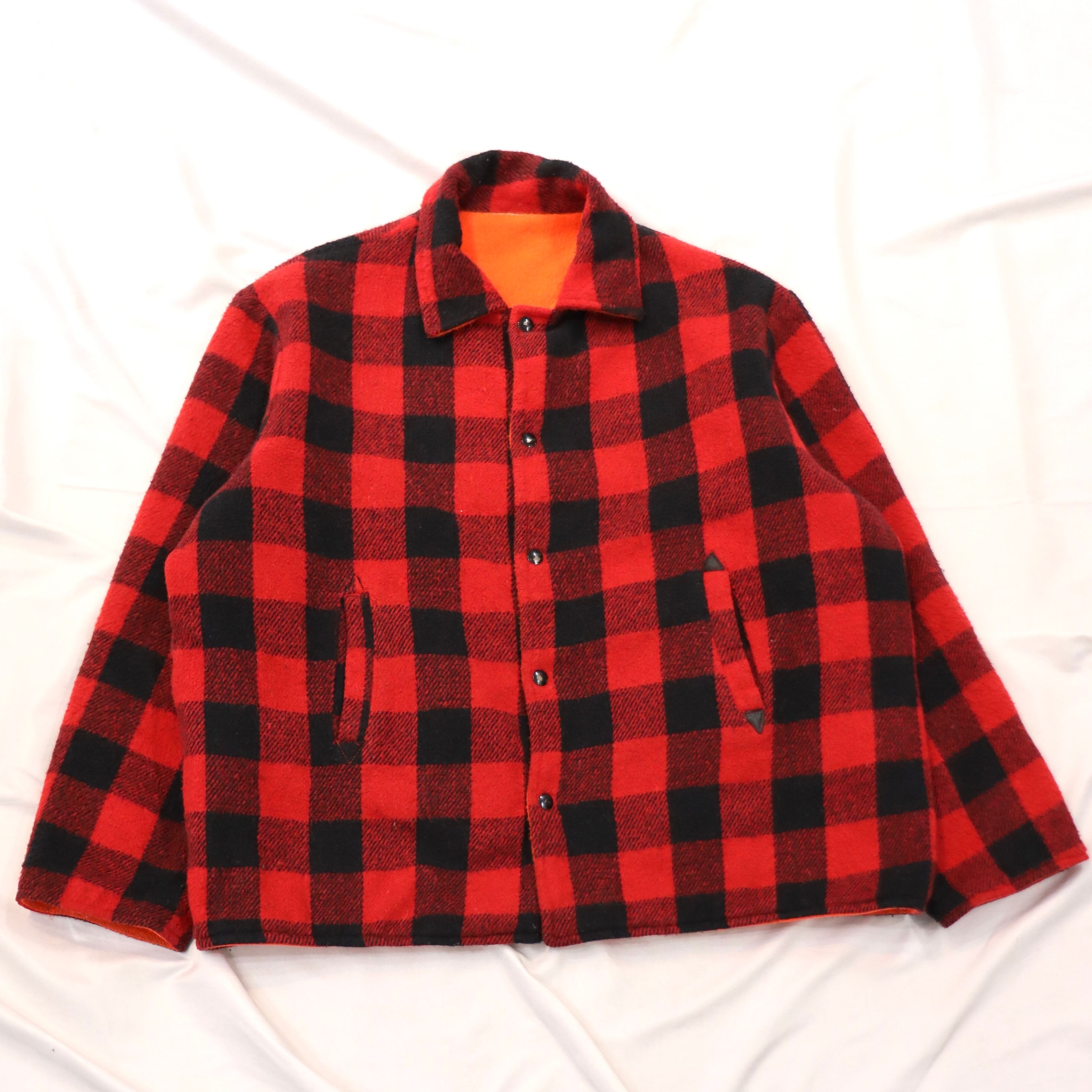 パキッとしたオレンジとクラシックなバッファローチェックのリバーシブル。